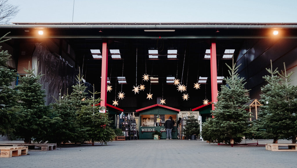 Unsere Weihnachtsbäume stammen aus Nienhagen in Niedersachsen von unserem Kollegen Leinemann und werden frisch geschlagen und angeliefert. Die Stämme sind bereits so bearbeitet, dass sie sich ganz leicht zuhause aufstellen lassen.